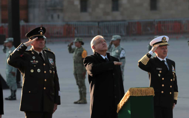 El presidente Andrés Manuel López Obrador encabezó este martes, en la Plaza de la Constitución, la Ceremonia del Izamiento de Bandera a media asta en memoria de las víctimas por los sismos de 1985 y 2017.